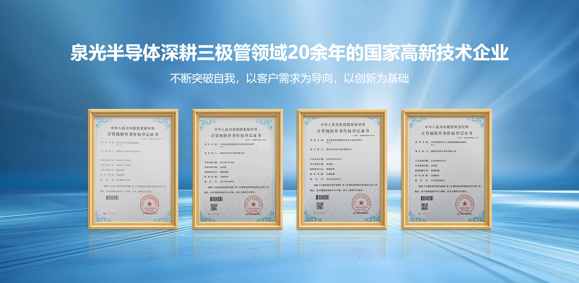 走进泉光半导体,我们给员工提供宽敞舒适的办公环境,全天候中央空调无尘生产车间,多条国内外高端自动生产线,全自动固晶、等离子清洗、高速精准焊线、机器人封装、智能化检测,全流程自动化运转,无需人工干预。车间里清晰可见SOT-23、SOT-23-3L、SOT-89、SOT-223、TO-92、TO-92L、TO-92S、TO-126、TO-251、TO-252等主流封装规格的生产工位。